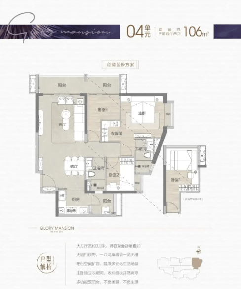 赏识着珠江两岸的夜景,君曜府的106㎡三房两卫户型,踩坑的顾虑从来没有消逝过。
